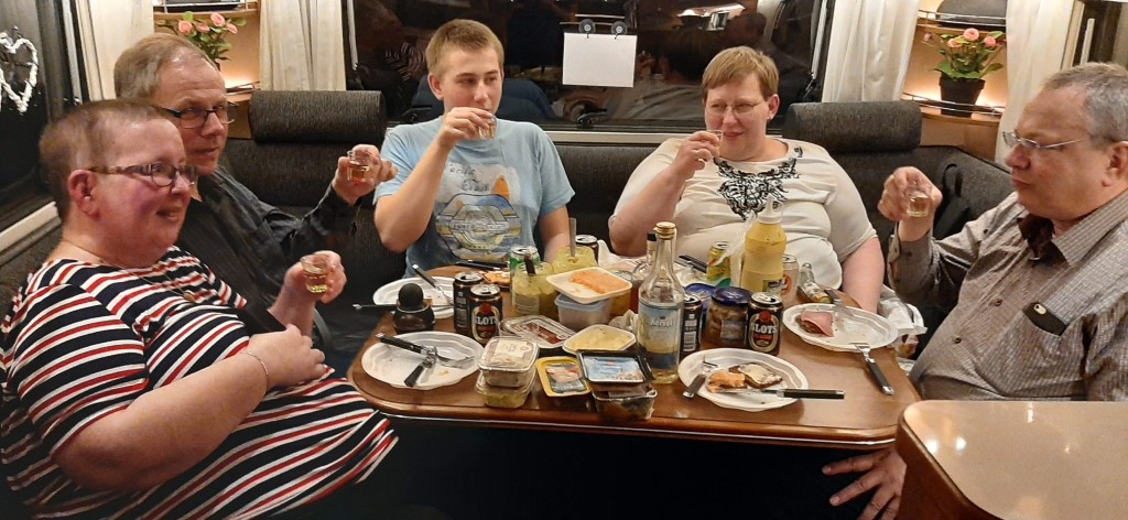 Om aftenen have vi fælles koldt bord i vores vogn.