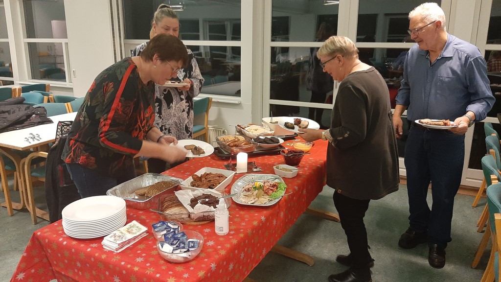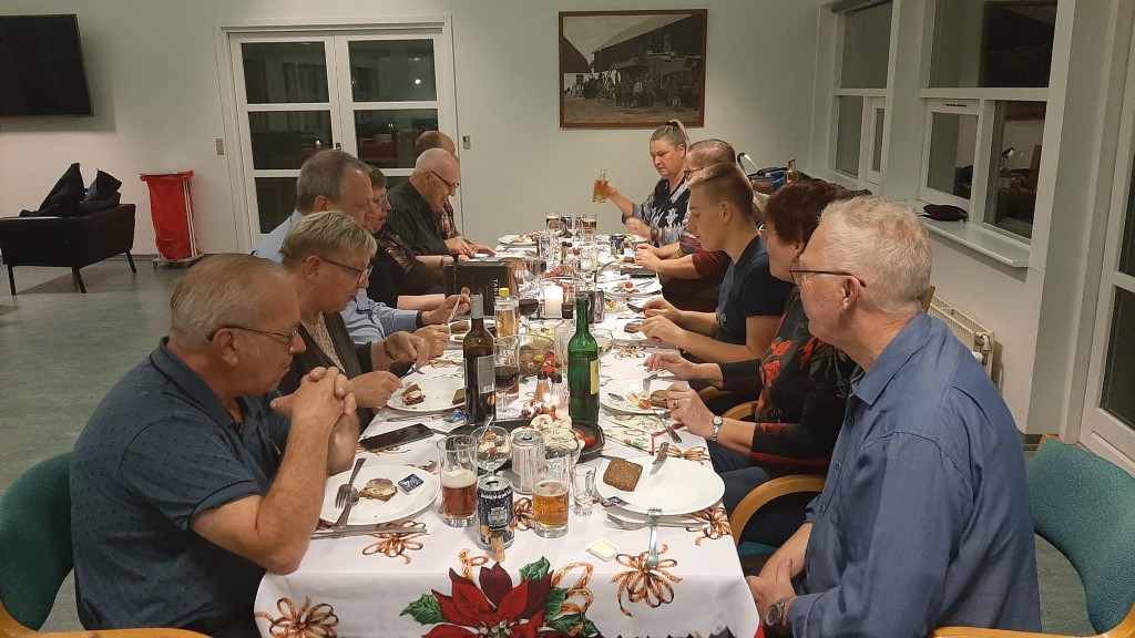 Om aftenen havde vi bestilt julefrokost fra Holbøl landbohjem, og der var alt hvad der skal til en julefrokost, selv Sønderjyske specialiteter.