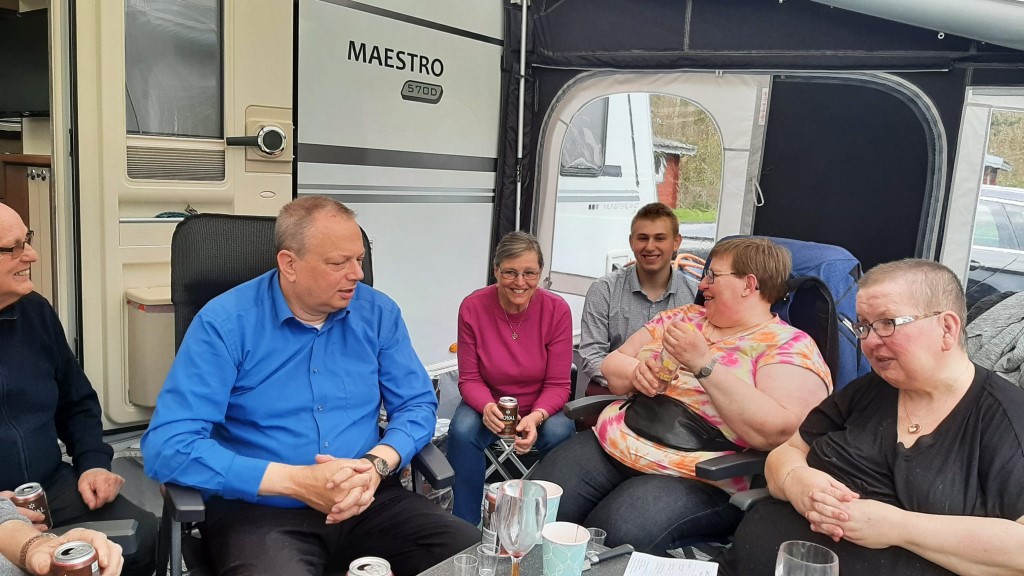 Mandag gik det atter hjem ad, efter en påske med rigtigt fint vejr, så vi kunne sidde ude imellem vognene.
