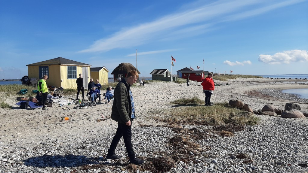 Senere var vi en tur ude på Erikshale, hvor de flotte badehuse ligger og her var Ærø beboerne igang med at koge æg på stranden.